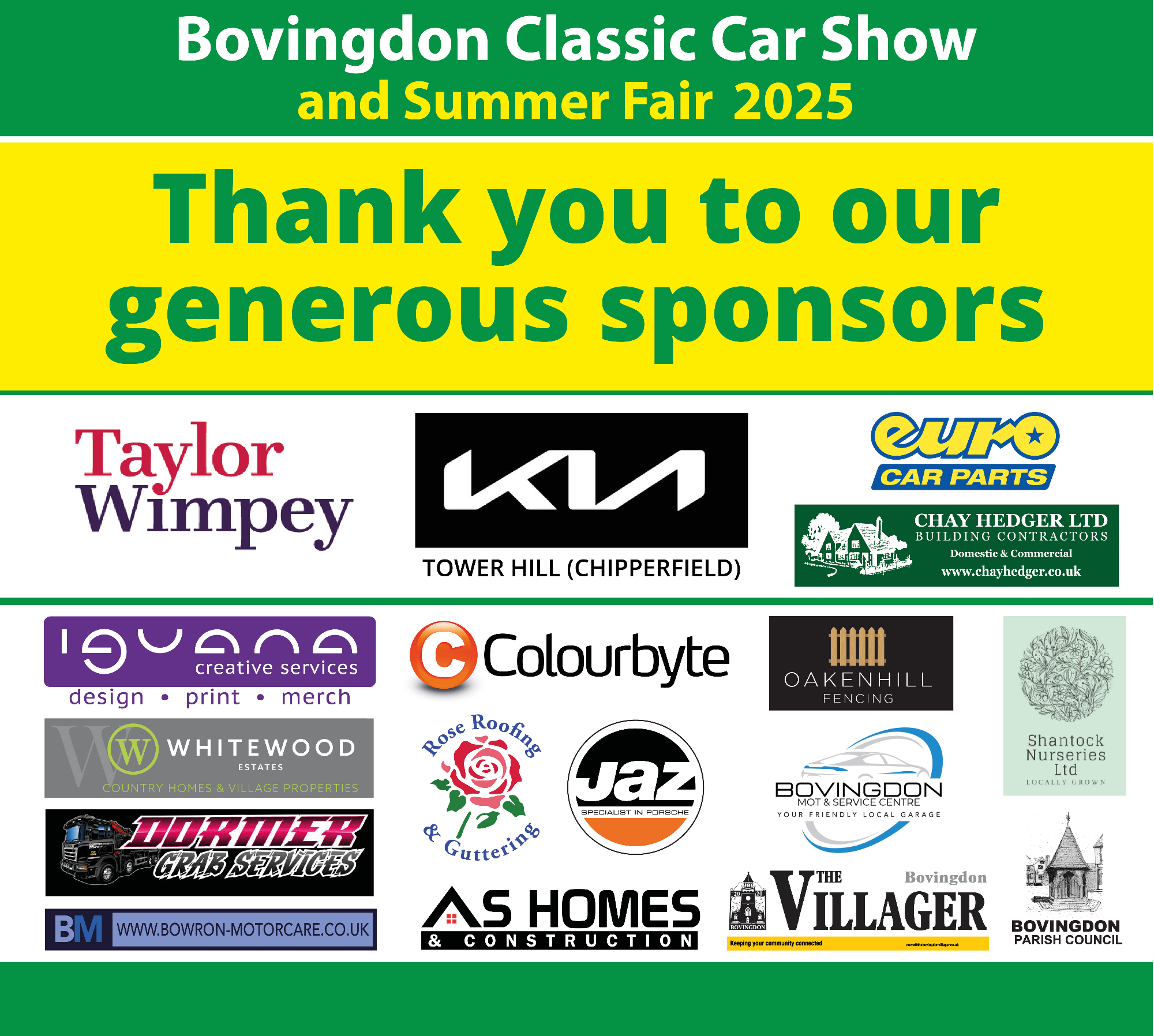 Please contact us if you'd like to become a sponsor or know more for this year's 2026 event info@bovingdoncarshow.com